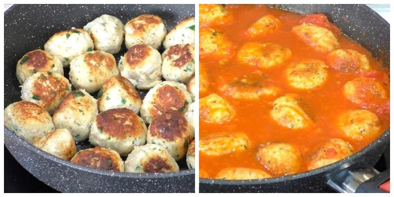 Наливаємо на сковороду олію, розігріваємо і викладаємо фрикадельки, обсмажуємо на сильному вогні з усіх боків.