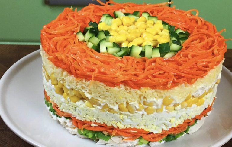 Хоча класичні варіанти цього салату знайомі багатьом, сьогодні я запропоную незвичайний та візуально привабливий рецепт із додаванням курячого філе.